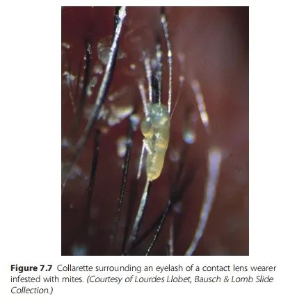 Patients may have oval-shaped skin Malassezia furfur at the local eyelid margin, which can break down lipids into irritating fatty acids. In addition, refractive errors, eye strain, malnutrition, and long-term use of inferior cosmetics may also induce.