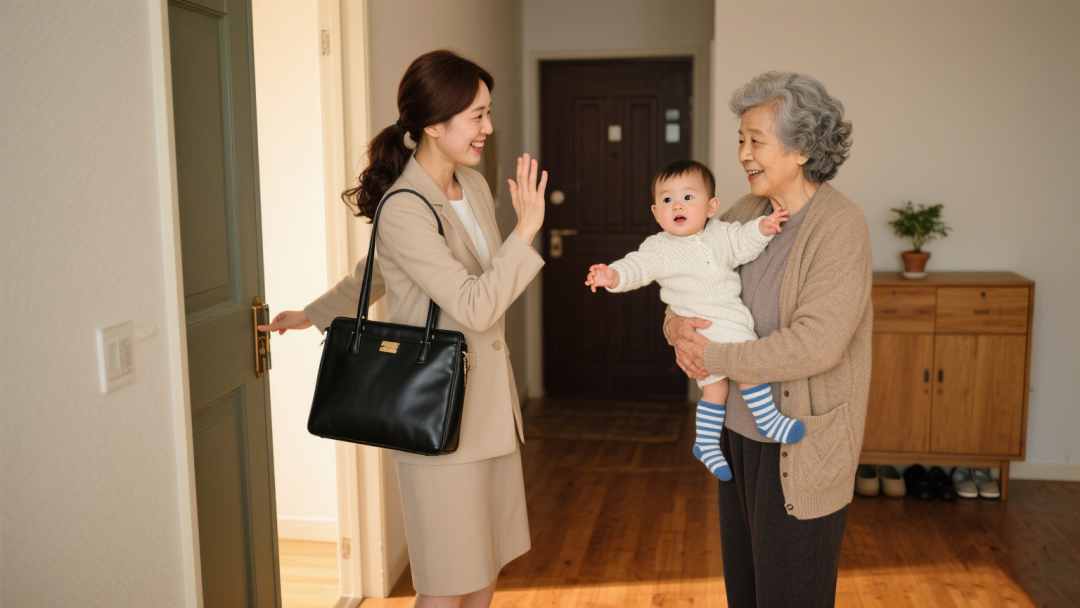 “Sweetheart, bye-bye, Mommy is going to work to earn money to buy you new clothes!”