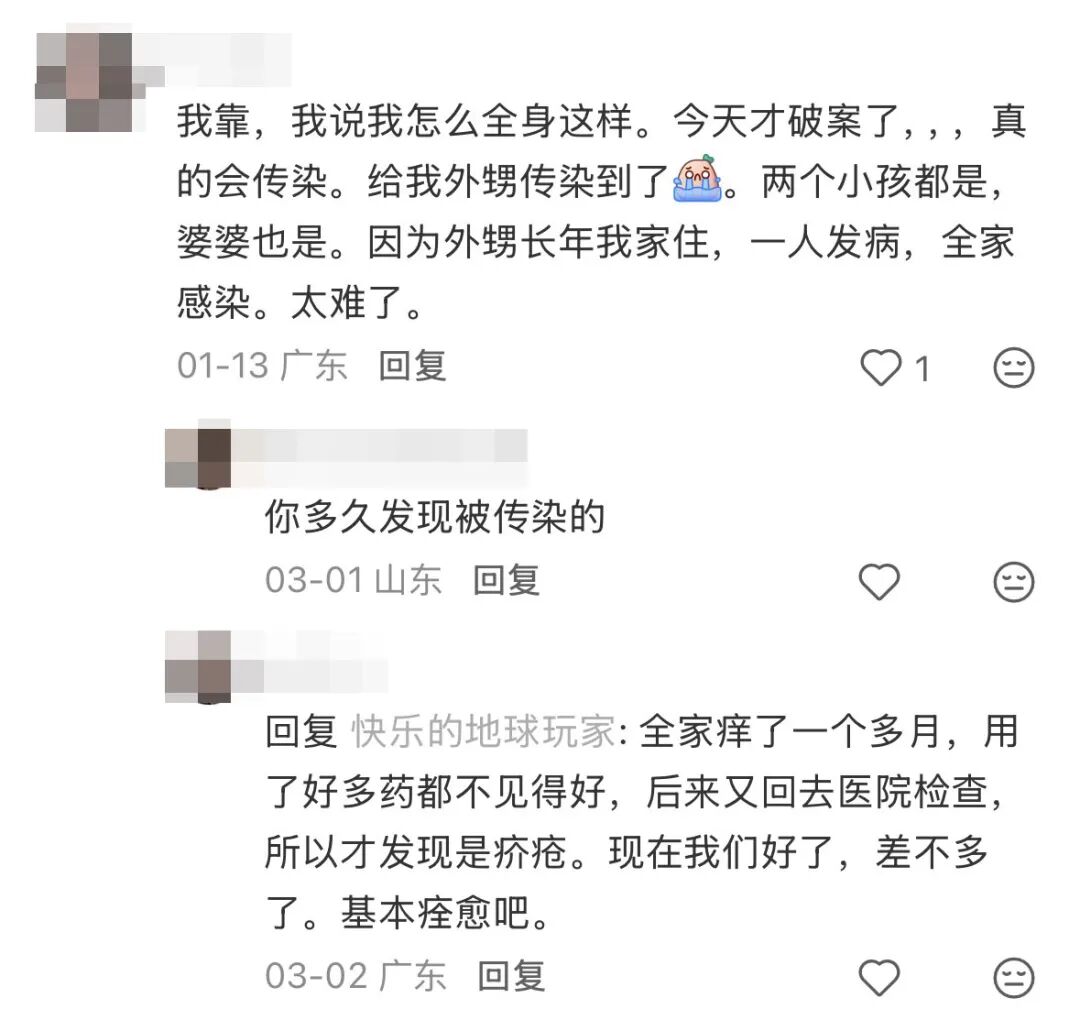 I came across a post online: A family has been itching for over a month, and tried all kinds of medicines without improvement. Finally, they were diagnosed with scabies.